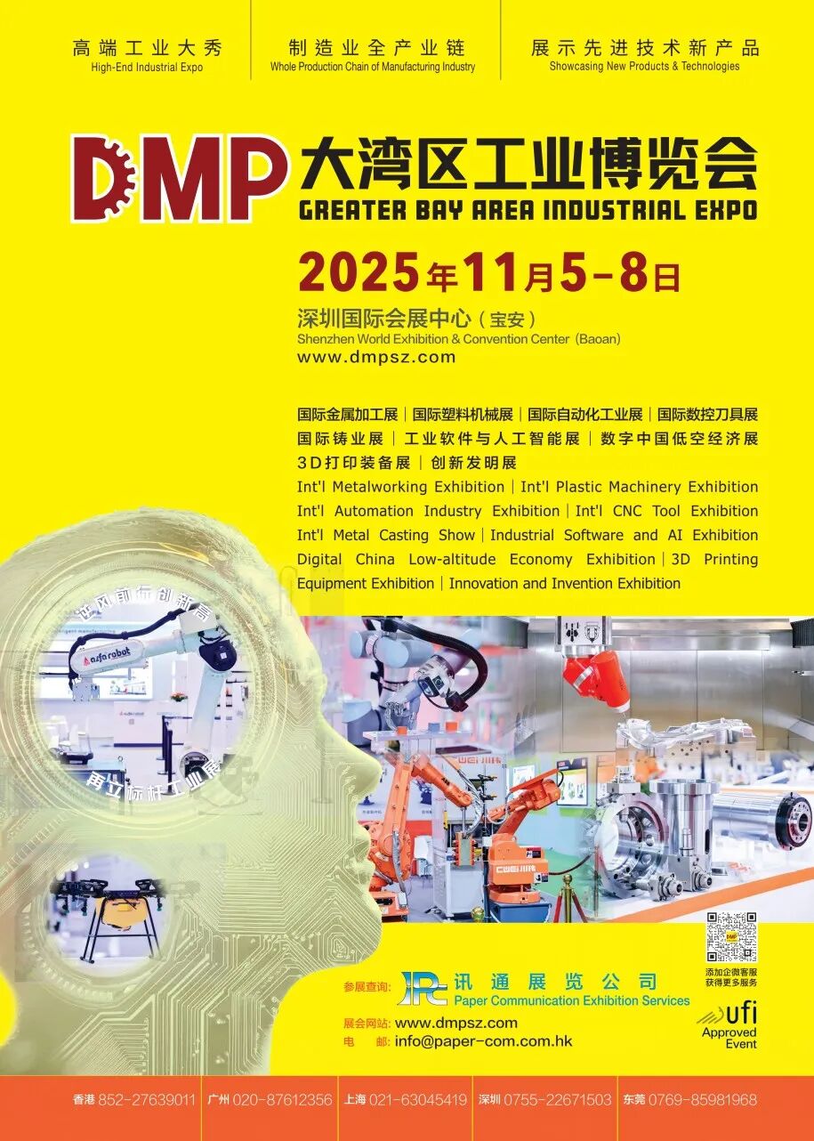 第26届DMP大湾区工业博览会(以下简称“DMP工博会”),将于11月5-8日在深圳国际会展中心(深圳宝安)举行!展会规模20万平方米,预计达2000家制造业企业汇聚亮相,现场50+场前瞻会议论坛赋能制造业年度大秀!