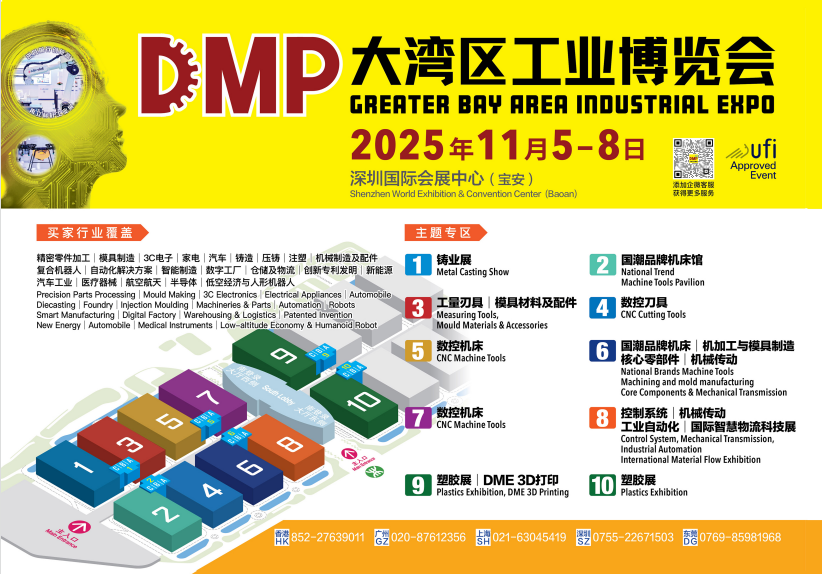 2025年DMP大湾区工博会,将汇聚更丰富的行业解决方案,构建开放共赢的工业生态,整场展会规划了10大展馆,主要包括金属加工与塑料加工2大产业链展区,涵盖数控机床、数控刀具、自动化及机器人、机械传动、压铸及铸造、精密注塑、机加工与模具制造、五金工具等多个领域的新成果、新应用,助力新能源、3C电子、医疗器械、光伏、汽车工业、航空航天等行业企业实现降本增效、高质量发展。