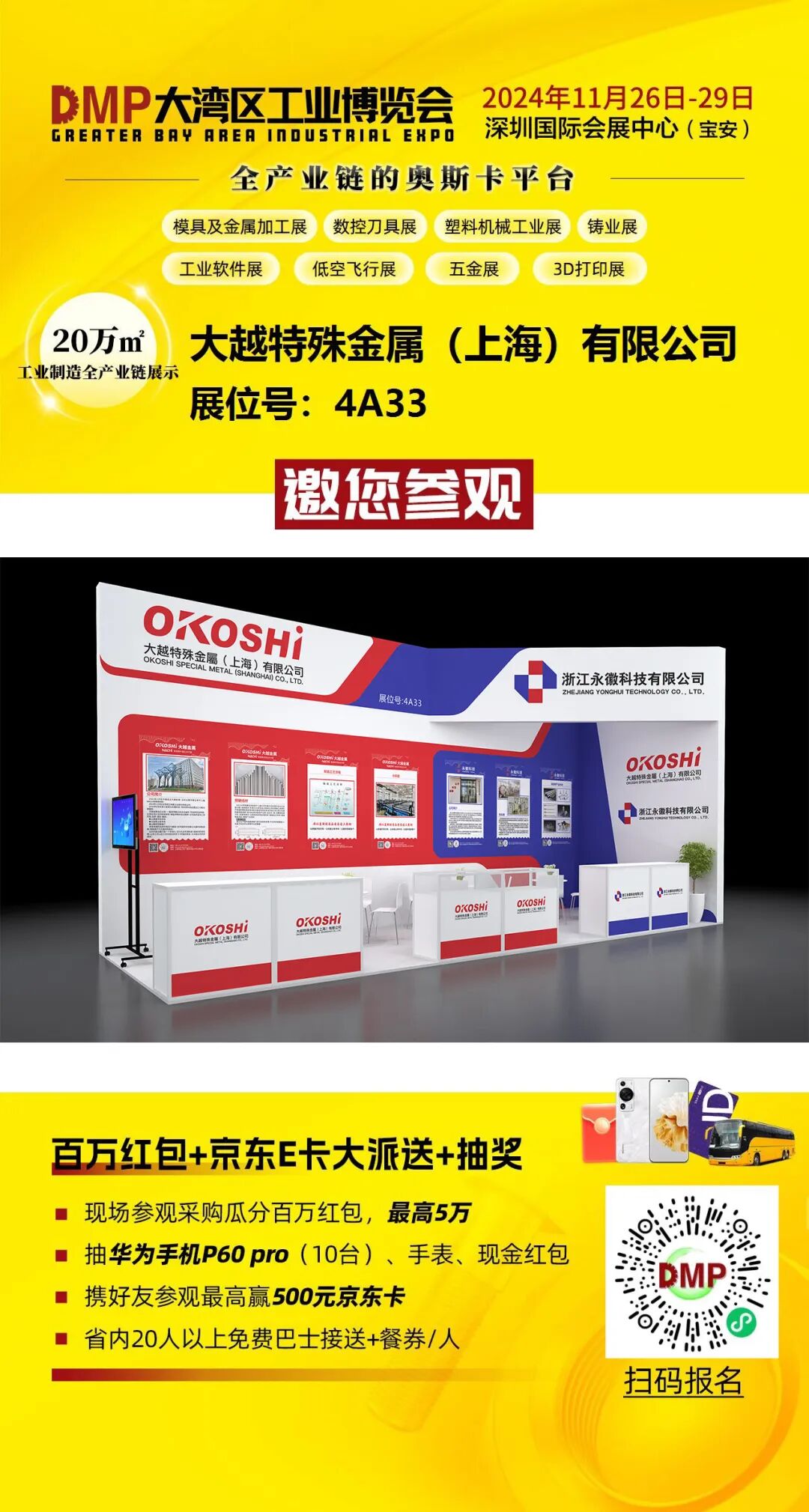 大越金属诚挚邀请您参加2024DMP大湾区工业博览会。展会为四天(2024.11.26-29),您将能在展位号4A33看到我们!期待您的到来,欢迎莅临指导!