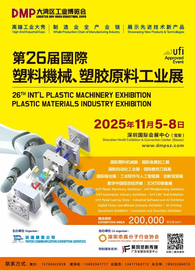 第26届DMP大湾区工业博览会将于2025年11月5日—11月8日在深圳国际会展中心(宝安)隆重举行。展览面积达20万m² ,汇聚全球2000家顶尖展商。