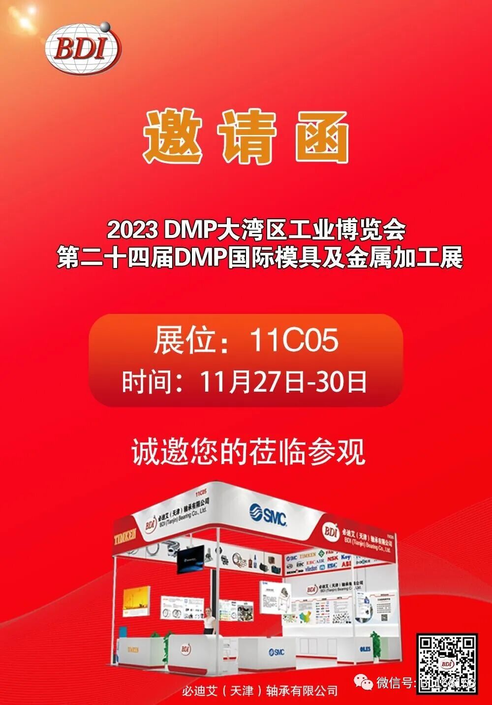 必迪艾(天津)轴承有限公司将于11月27日-30日,参加在深圳举办的2023 DMP大湾区工业博览会(第二十四届DMP国际模具及金属加工展)。