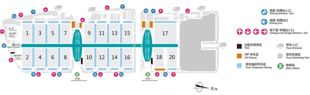 导航至“深圳国际会展中心”(深圳市宝安区展城路1号),紧临沿江高速,经由“国际会展中心”和“福海”两个收费站可直通展馆。外地车牌工作日早晚高峰限行(可以在深圳交警官网申请免限行通行证)。