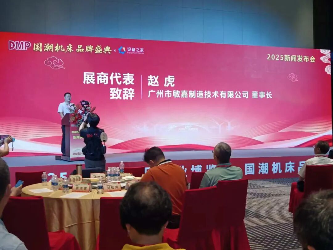 赵虎董事长作为展商代表上台致辞,他表示讯展办展会一直办的不错,“国潮机床”令人耳目一新,表示我们国产自主机床品牌才是发展大潮流。中国机床突然爆发,是各行各业大发展带来的新机遇,像中国新能源突然爆发,就是靠机床行业支撑。2009年我国首次成为世界机床第一大生产国,国潮靠什么支撑?我认为主要有以下几点:1、市场牵引,新能源和人形机器人的发展等各种产业给了机床支撑,新能源发展很大程度上推动机床行业快速发展;2、创新驱动,赵虎表示,广州敏嘉从最初的3个人到后面的规模发展,我们创造了16轴加工中心,第一台数控螺纹磨床,许多第一次,就是靠创新驱动,以创新驱动带动行业高质量发展。如何评价中国机床?重庆立嘉展办了一个中国民营企业机床峰会,并邀请机床企业领军人物、专家和企业家,共探机床企业与行业的发展和前景。有好机床,才能在行业展会好好展示;3、供应链、产业链的发展,像台湾就有比较完整的机床产业链、供应链。我们大湾区比台湾大多了,全广东省甚至全世界最好的机床、机器人供应链产业链都在大湾区、珠三角,这里从主轴、丝杠导轨、转台等关键零部件的生产商都有,我们要集聚抱团,发展成区域优势。我们广州敏嘉也建了一个共享制造的车间,欢迎有兴趣,有意向的行业朋友前来探讨,共享资源,共谋发展。