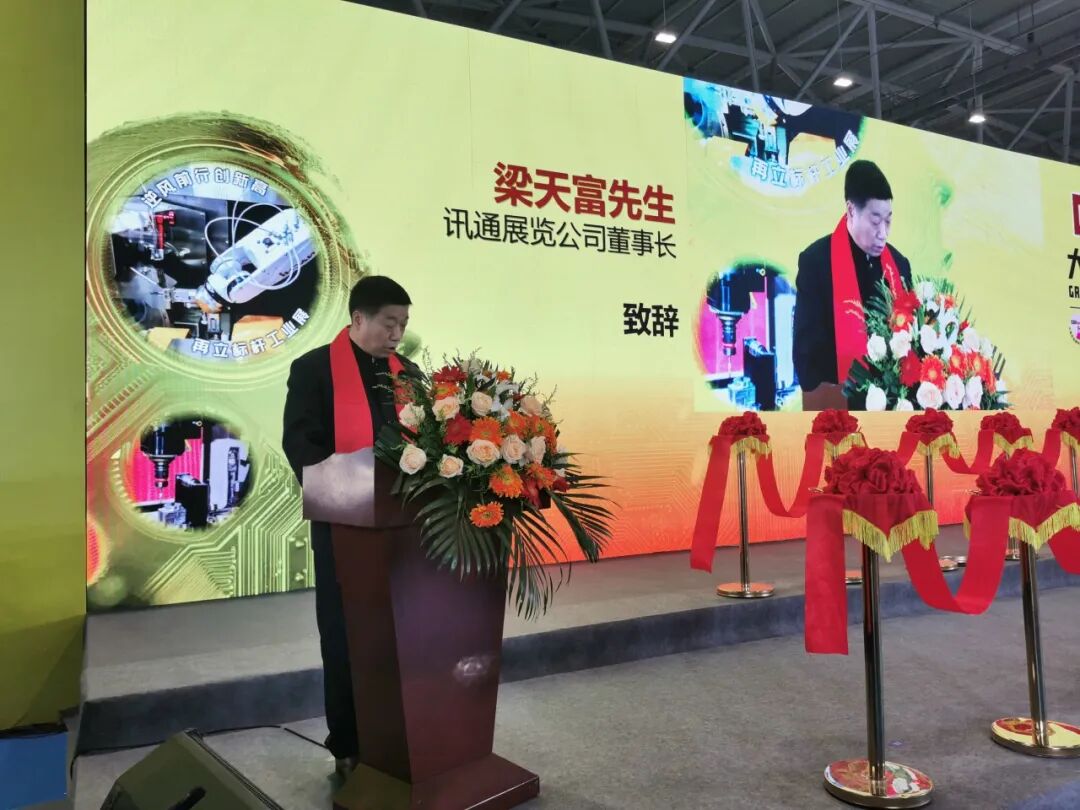 开幕式现场气氛热烈,在庄严的国歌声中拉开序幕。讯通展览公司作为主办方,深耕工业会展领域40年,始终秉持“链接全球智造,赋能产业升级”的使命,推动展会从单一展示平台升级为集技术交流、成果转化、供需对接于一体的产业生态平台。公司董事长梁天富在欢迎词中,表达了对推动制造业升级的坚定信念,让与会者对展会充满期待。