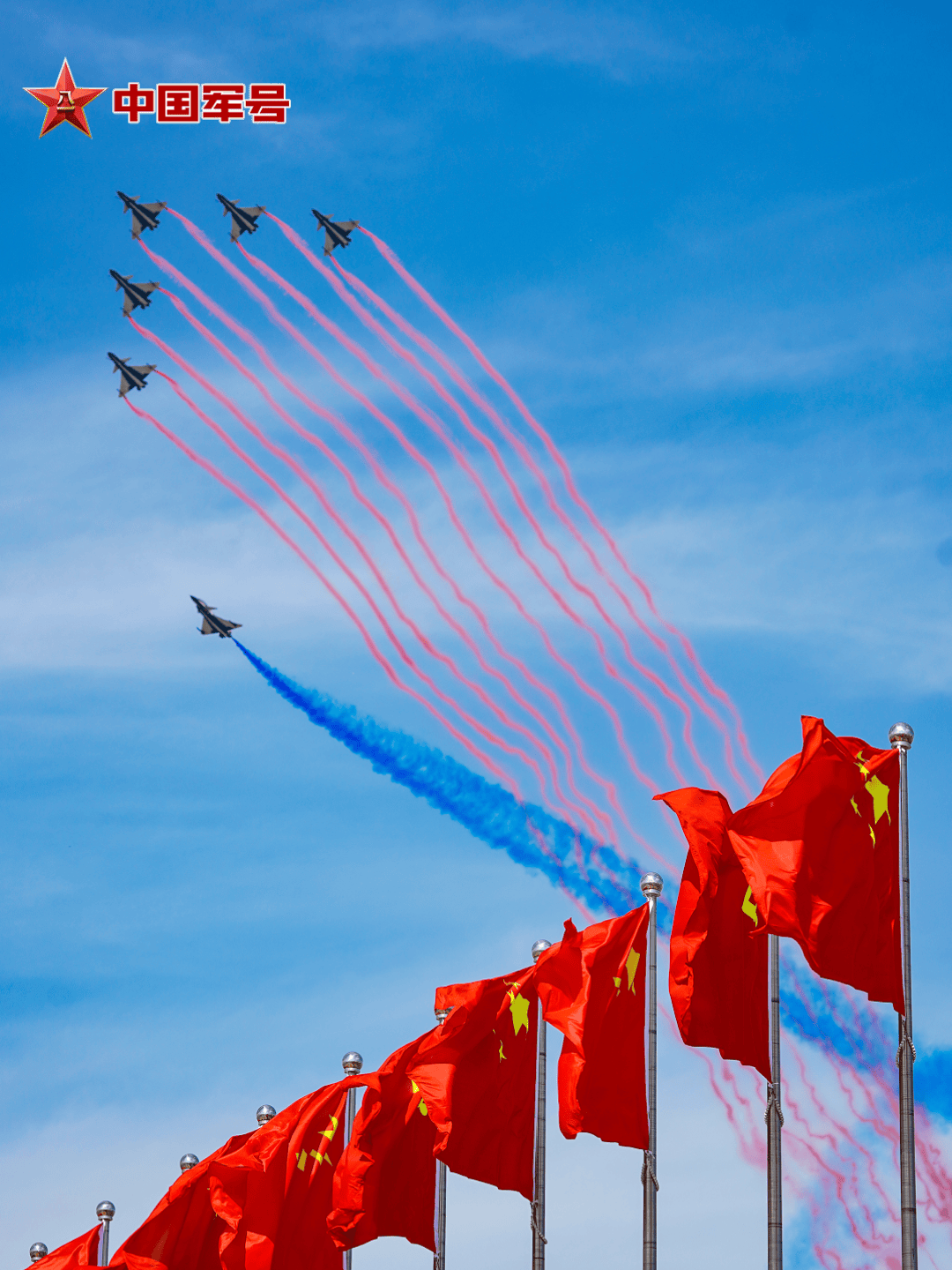 空军航空开放飞行表演镜头下,战机与红旗交相辉映,上演一幅绝美视觉盛宴!