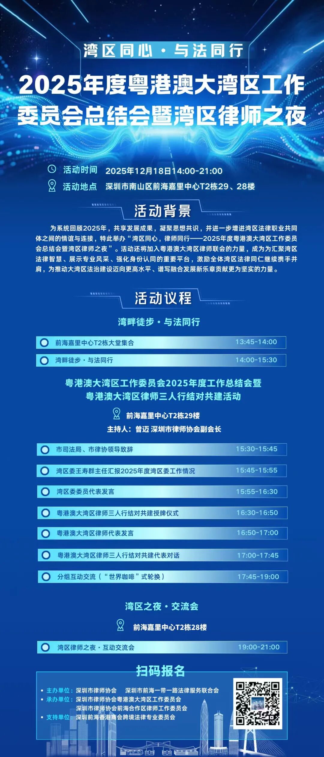 活动邀请 | 2025年度粤港澳大湾区工作委员会总结会暨湾区律师之夜