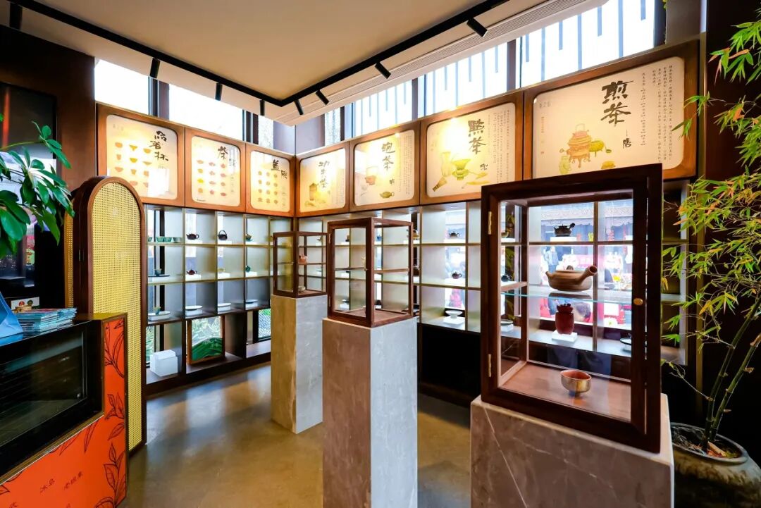 乘之堂·茶文化品鉴馆内的小微展馆,陈放着不同年份的珍藏茶叶与精美茶器,器物与茶品相映成趣,尽显茶韵悠长。