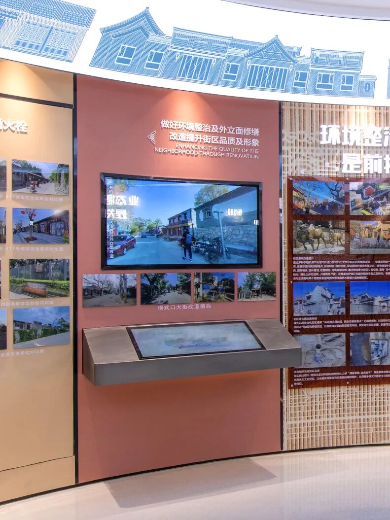 游客服务中心内打造的有机更新成果展示厅,以五大核心理念和指导原则为脉络,系统呈现街区惠民设施改造、市民文化休闲共享空间升级、京西特色文化小微展馆打造、商业文化休闲体验院落营造及古韵新生沿街网红休闲商业模式构建的全过程,成为直观感受街区蝶变的窗口。