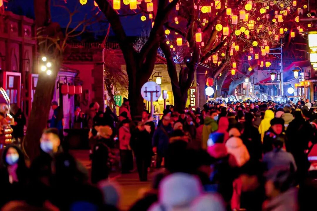 新春期间,“花漾模式口”灯会如期点亮新春夜景,打造“十里银花”盛景,游客们纷纷放慢脚步,或驻足凝视灯组细节,或举起手机定格美景,阵阵惊叹与欢笑在灯影中回荡。