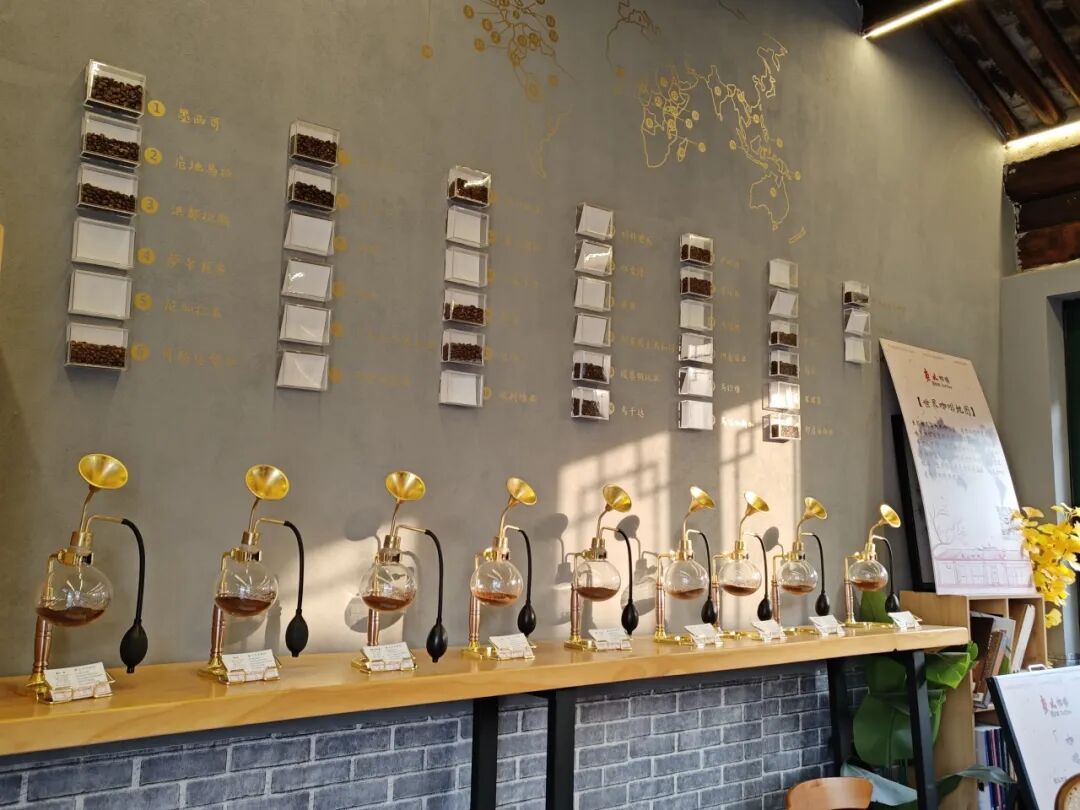 磨山咖啡小微展馆收集来自世界各地的咖啡豆,将其设计成为世界咖啡地图主题装饰,配专业闻香机与手冲、意式咖啡器具展区,游客可亲手制作咖啡,还能参与沙龙了解产地故事与烘焙工艺。