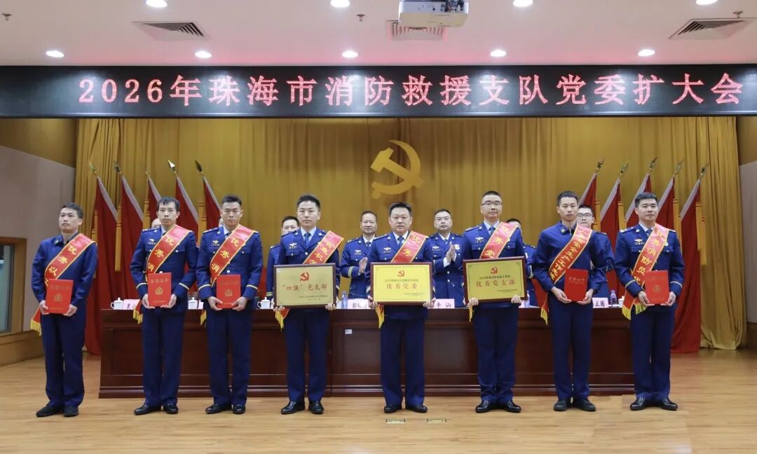 会议传达学习了总队党委扩大会精神和市委、市政府主要领导批示精神,通报了2025年度大队、站级领导班子和干部考核等次,为2025年度先进集体和个人颁奖。彭辉庭政委作了题为《赓续特区精神闯创干 勇担时代使命争先锋 为珠海高质量打造中国式现代化城市样板贡献消防力量》的工作报告,李汕支队长点评2025年度大队级党委班子建设情况并就贯彻落实会议精神提出要求。