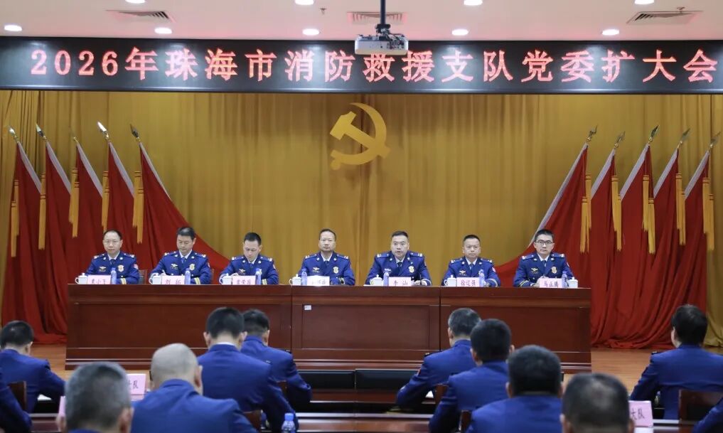 2月27日,珠海支队召开2026年党委扩大会议,深入学习贯彻习近平新时代中国特色社会主义思想,认真落实总队党委扩大会议精神和珠海市“两会”精神,全面总结回顾2025年工作,科学部署2026年工作。支队党委书记、政治委员彭辉庭代表党委作工作报告,党委副书记、支队长李汕主持会议。