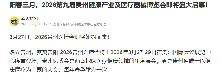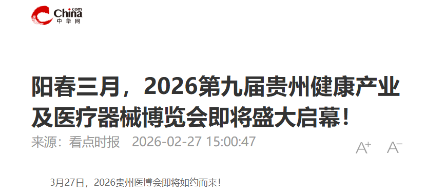 阳春三月,2026第九届贵州健康产业及医疗器械博览会即将盛大启幕!