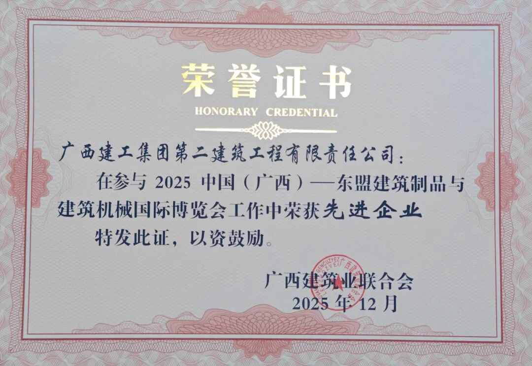 近日,广西建筑业联合会印发通报,对参与2025年中国(广西)—东盟建筑制品与建筑机械国际博览会的相关先进协会、企业与个人予以表扬。公司凭借在展会组织与服务中的积极贡献,获评为“先进企业”。
