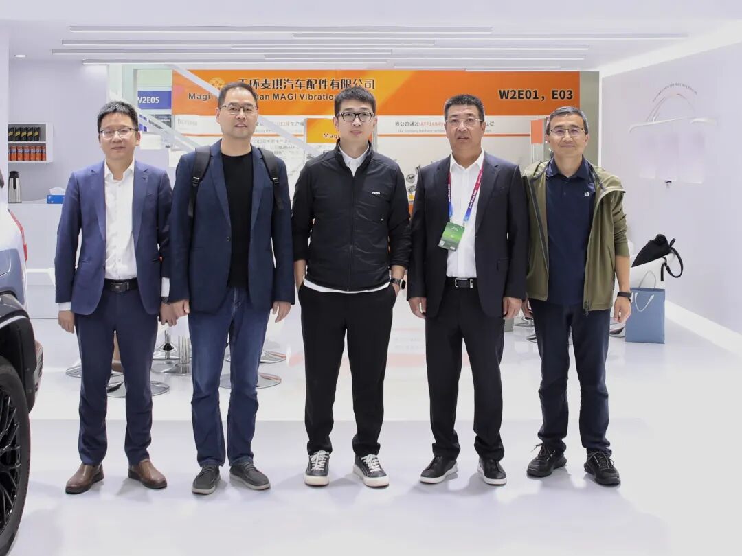 德昌电机全球汽车业务掌舵人JE集团SVP KCKO(左三)、E-Driver版块VP Eric So(右三)、中国区销售总经理陈志强(左一)一行