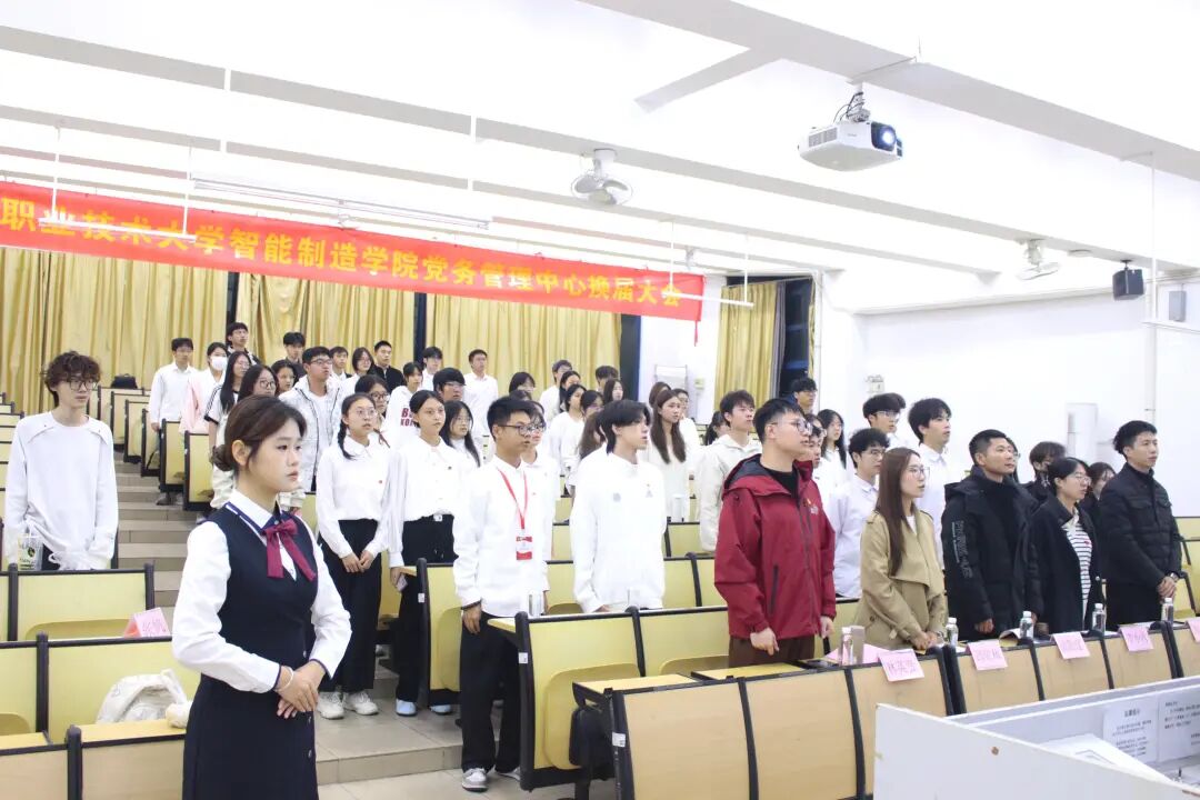 最后,镜头缓缓扫过全场,定格在新老成员双手交握的庄严时刻,也记录下每一张专注聆听的面孔。在热烈而持久的掌声中,本次智能制造学院党务管理中心换届大会圆满落下帷幕。