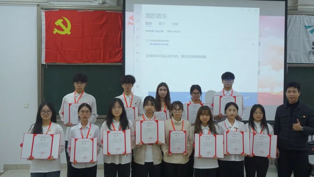 随后是为上一届优秀骨干颁发荣誉证书和为新一届骨干颁发聘书环节。由林英贤老师为上一届优秀骨干颁发荣誉证书,由冯少鸿老师为新一届学生骨干颁发聘书和工作证。他们手中的荣誉证书不仅仅是一份证书,更是一份担当,一份职责,是他们为学院辛勤付出的证明。