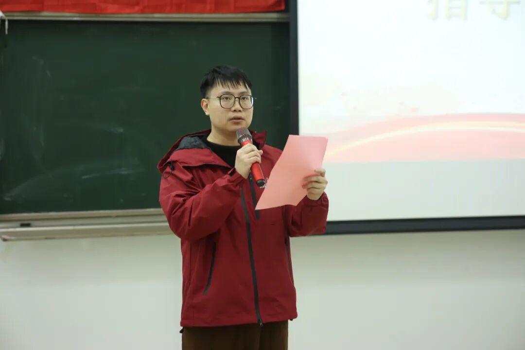 接着,上一届党务管理中心主任鲁浩光同学作2024-2025年度工作报告。他在报告中回顾了过去一年的工作,在思想引领上推动政治理论学习更接地气,在党员发展中通过提升办公技能实现了工作规范化,在组织协同上加强了与兄弟组织的常态化合作。他特别感谢了林英贤、冯少鸿等老师的悉心指导以及全体成员的齐心协力。展望未来,他勉励新一届骨干传承“分工不分家”的优良传统,发扬“干字当头、实干为要”的精神,以“功成不必在我,功成必定有我”的担当,为学院打造有高度、有温度、有力度的党建工作新格局持续贡献力量。