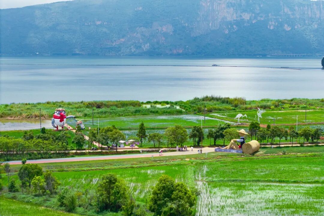 昆明福保半岛商业区全新启幕,30余家涵盖创意手作、非遗文化、便捷零售、科技生活、健康运动等多元业态的商业陆续开业,打造充满烟火气息的消费和社交场景,为市民游客带来全新的游、娱、购体验。半岛生态农田区完成艺术化蜕变,稻田区种植彩色水稻,运用紫、红、绿三色水稻拼绘出“西山睡美人”样貌,打造大地艺术奇观,成为新晋网红打卡地。白鹭鸶、稻草人、旅行鸥、彩虹糖等艺术装置焕然一新,重构田野空间。
