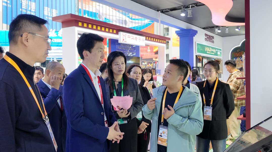 会展期间,拉萨南亚跨境电商产业园展台人头攒动,始终洋溢着热烈的交流气氛。前来咨询南亚市场机遇的客商络绎不绝,我园工作人员始终以饱满的热情,耐心讲解园区的区位优势与政策亮点,为每一位到访者提供细致的讲解与专业的介绍。