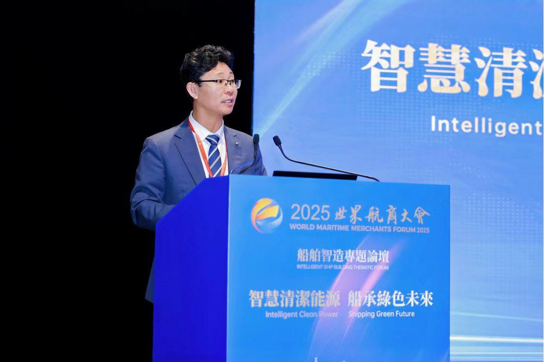 梅先志作论坛闭幕致辞,代表招商工业向莅临现场的专家学者、企业伙伴,以及支持论坛的各单位、媒体记者和工作人员致以诚挚感谢。他表示,以“智慧清洁能源、船承绿色未来”为主题的第五届世界航商大会船舶智造分论坛圆满落幕,各方通过论坛凝聚行业共识,现场达成的证书颁发、项目签约等成果,为航运业低碳转型注入动力。他倡议行业携手以智慧与清洁能源为支撑,共筑绿色智能的航运未来。