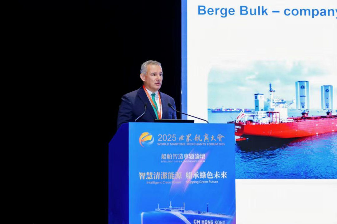 保罗·托农在主题演讲时披露了全球首艘32.5万DWT风翼改装船的凤翼首年实战数据:巴西—中国、巴西—新加坡两航次平均省油22%,单日峰值省油28吨,单航次最高减碳377吨。该公司已订2艘氨燃料船舶,预计2028年交付。