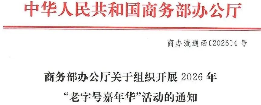 为深入贯彻落实党中央、国务院关于坚持内需主导、建设强大国内市场的决策部署,充分发挥老字号在扩内需、促消费等方面的积极作用,推动老字号守正创新发展,按照2026年“购在中国”活动总体安排,商务部决定组织开展2026年“老字号嘉年华”活动。现就有关事项通知如下: