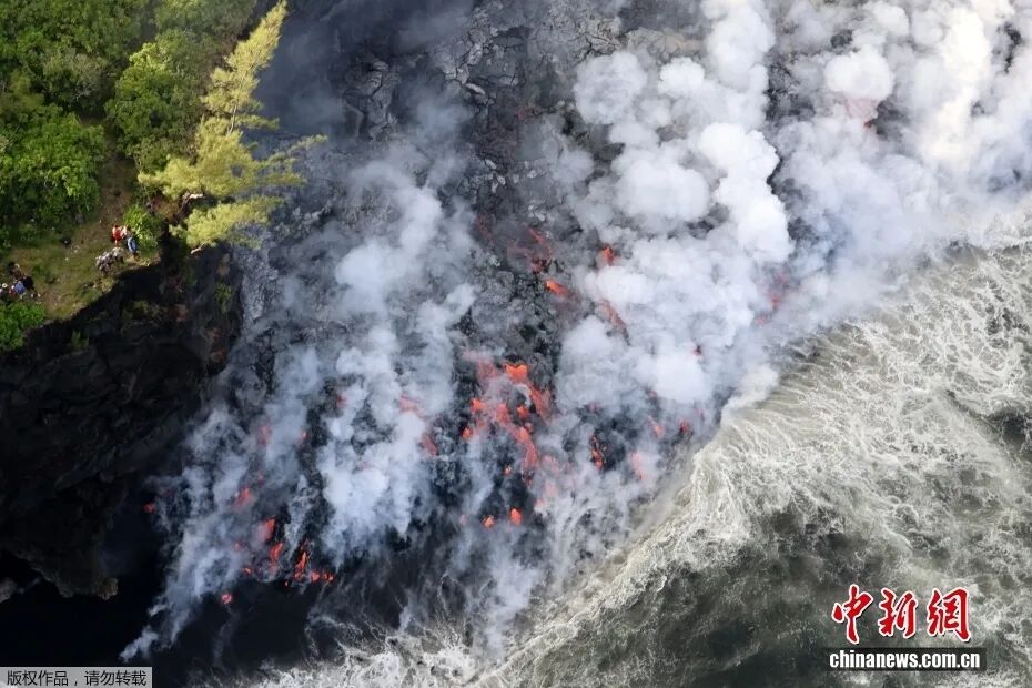 "法国富尔奈斯火山熔岩流入海洋"