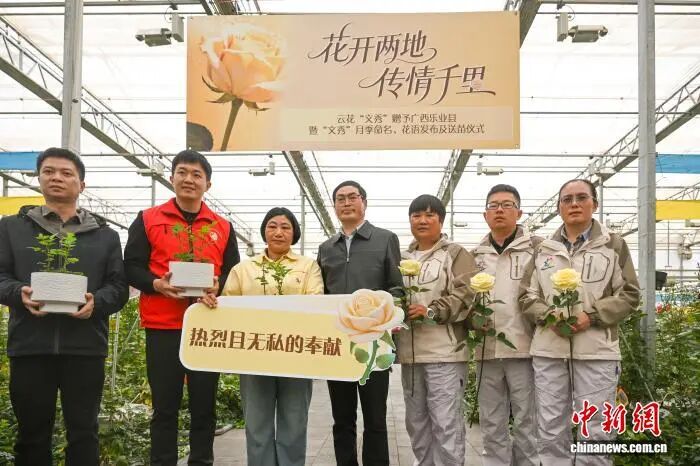 "云花“文秀”月季定名送苗 花开两地传情千里"