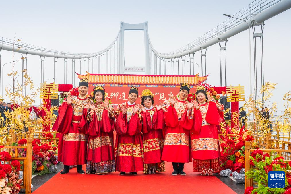 "湖北武汉: 长江大桥上的集体婚礼"