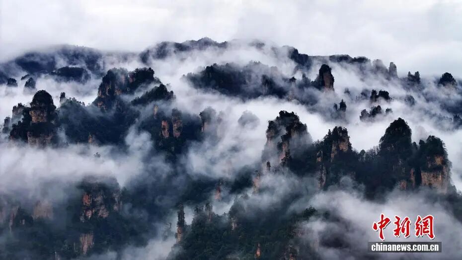 "湖南张家界十里画廊雨后云海壮阔如画"