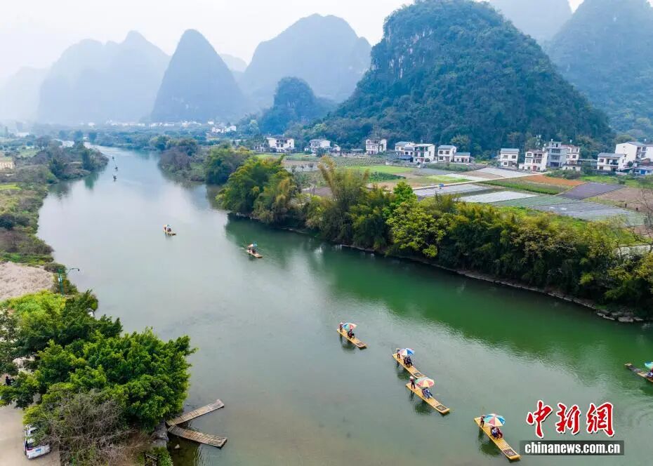 "广西阳朔:春游遇龙河 人在画中游