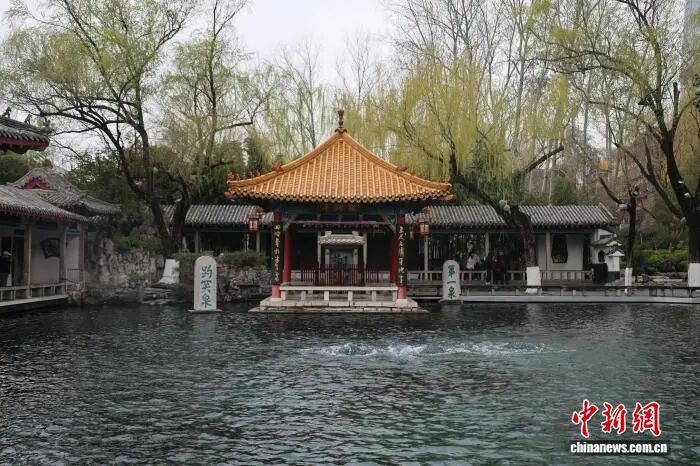 "山东济南:春雨如油 民众雨中畅游趵突泉"