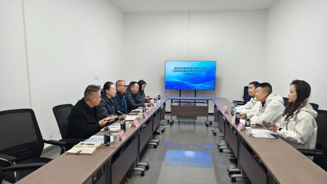 与四川川发康源水业有限责任公司进行交流座谈。董事长曾信、副董事长田超出席会议。
