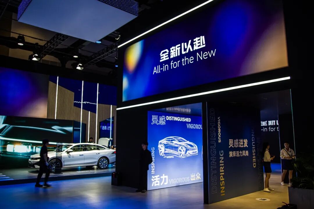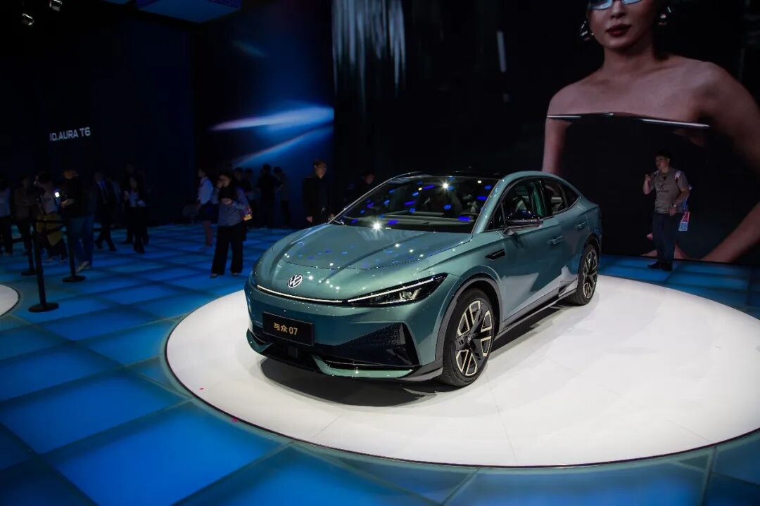 展台最中央属于大众安徽。相信大家都明显看出在2026年,这家大众在华最新的合资伙伴显著加快了新品发布的速度,不久前才有与众08正式上市,在车展中我们又看到了全新的中型纯电运动轿车与众07。