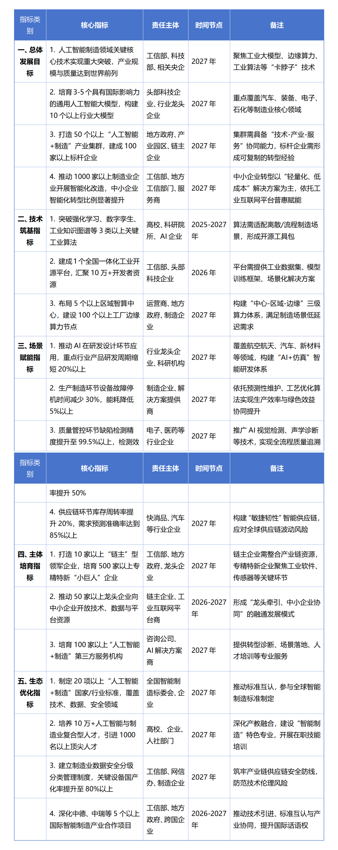 《“人工智能 + 制造” 专项行动实施意见》核心指标分解表
