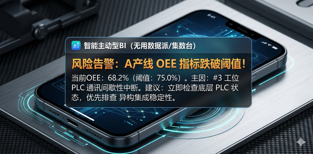 BI 深度集成于主流移动办公终端。当 OEE 指标异常或采购成本触发阈值,系统自动推送“风险信令”及“归因分析”。 - 口径对齐(Headless BI):