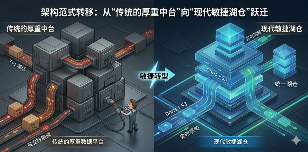 1. 架构范式转移:从“厚重中台”向“敏捷湖仓(Lakehouse)”跃迁