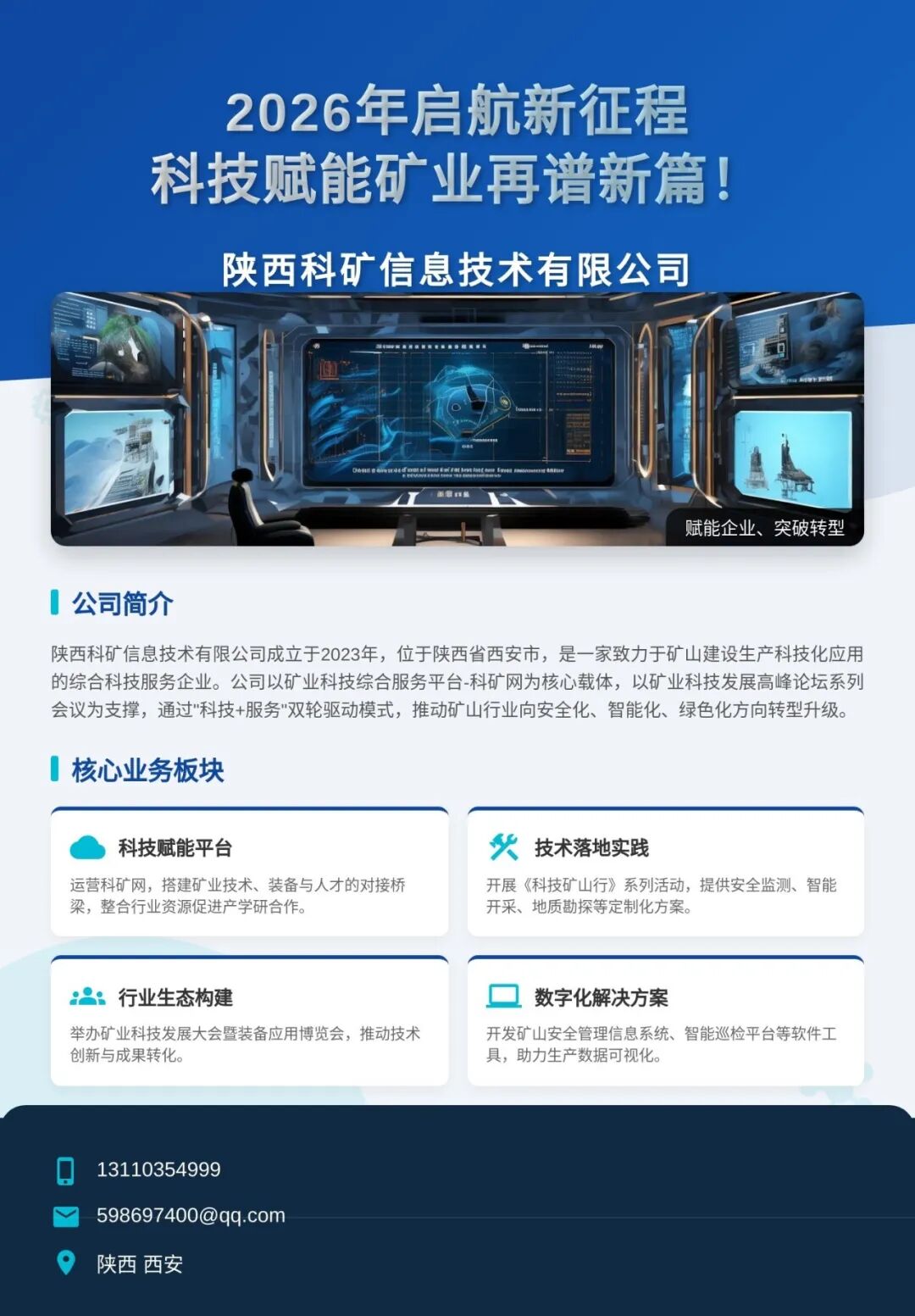 陕西科矿信息技术有限公司成立于2023年,位于陕西省西安市,是一家致力于矿山建设生产科技化应用的综合科技服务企业。公司以矿业科技综合服务平台科矿网为核心载体,以矿业科技发展高峰论坛系列会议为支撑,通过“科技+服务”双轮驱动模式,致力于推动矿山行业向安全化、智能化、绿色化方向转型升级。