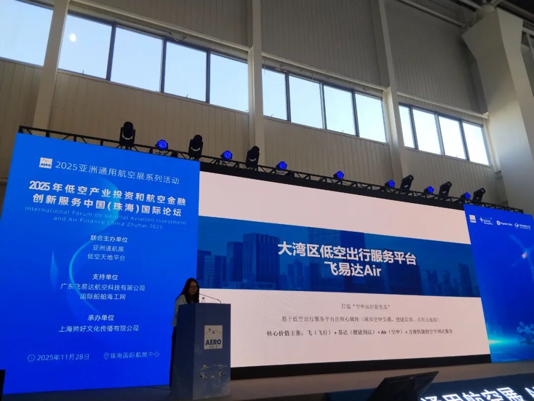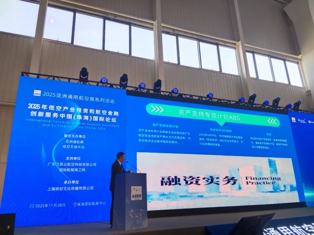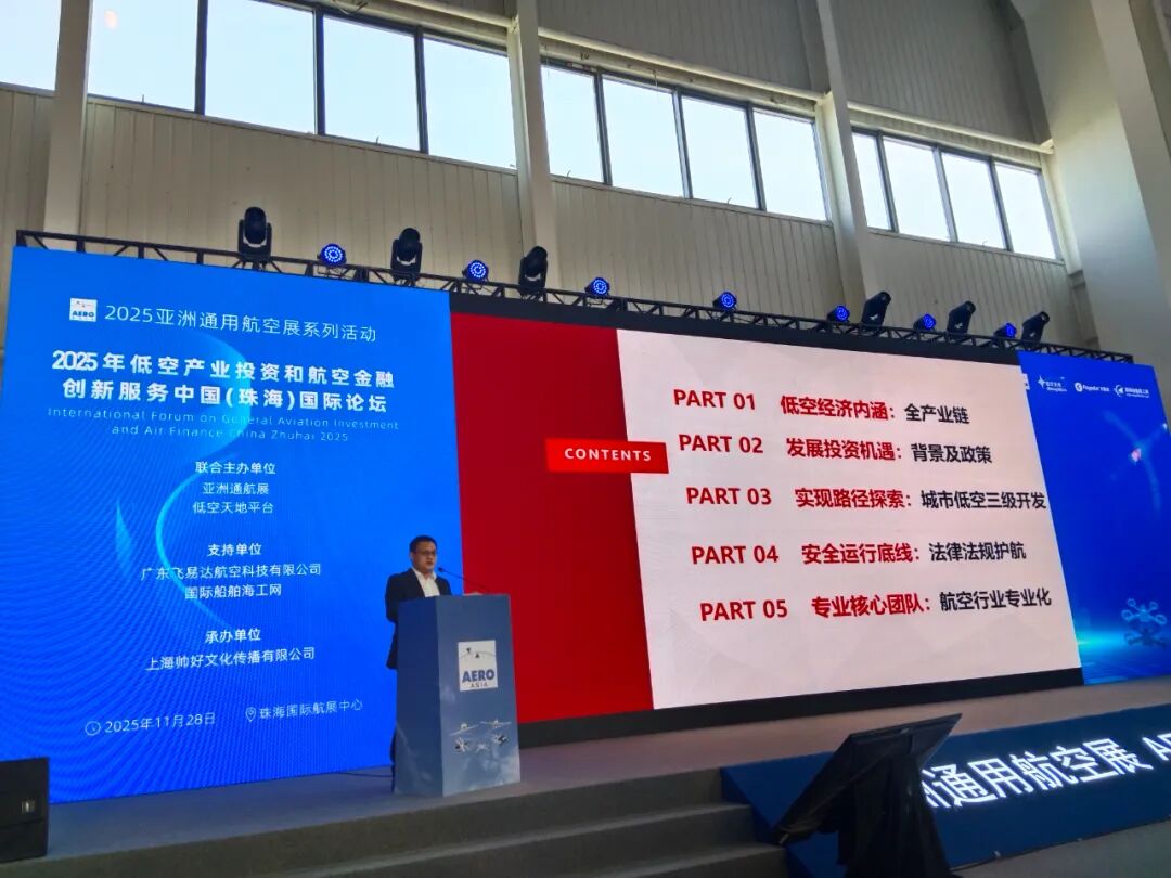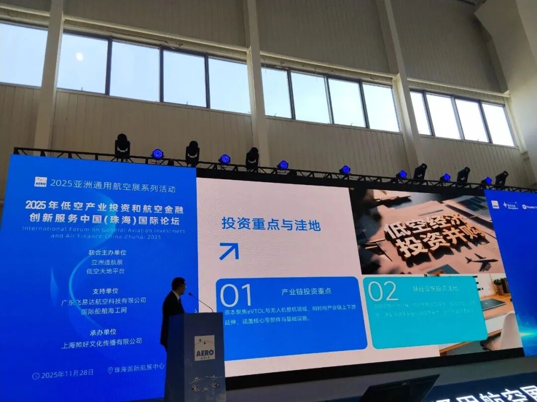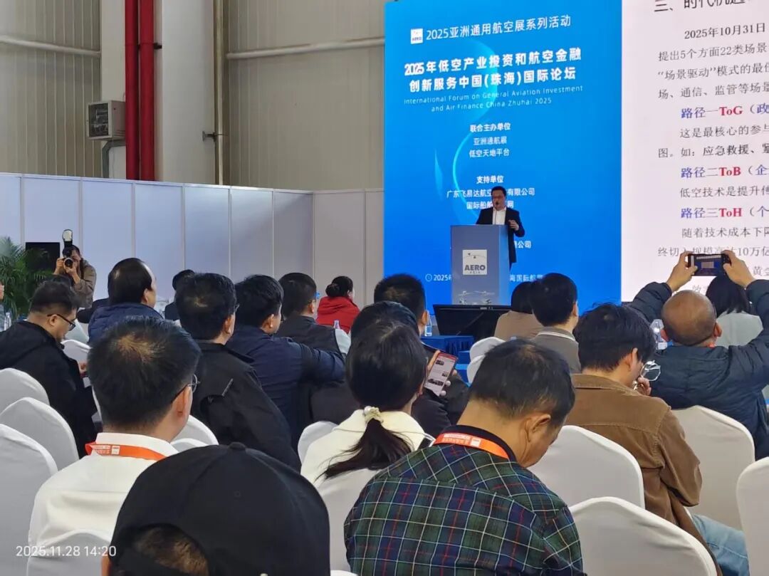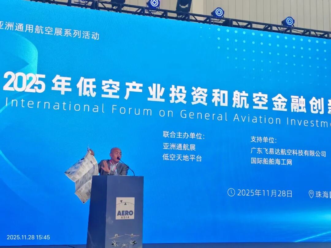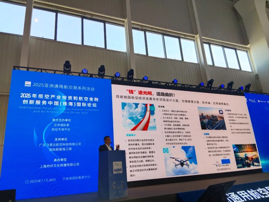 亚洲通航展和低空天地平台联合主办,广东飞易达献空科技有限公司和国际船帕海工网支持,上海帅好文化传播有限公司承办的2025年低空产业投资和航空金融创新服务中国珠海国际论坛,11月28日在珠海航展中心成功召开,中外专家和金融人士等汇聚一趟交流,部分图片如下: