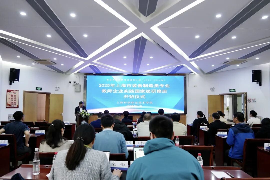 4月11日,“2025年上海市装备制造类专业教师企业实践国家级研修班”开班仪式在上海科创职业技术学院隆重举行。上海市教委人事处副处长柏丹,上海市教师教育学院职教国培项目负责人朱园飞,上海锅炉厂有限公司特级技师唐国伟 ,上海科创职业技术学院党委副书记、院长李闽洲,副院长何佩军以及来自上海10所职业院校的27名骨干教师共同出席了本次开班仪式。开班仪式由科创职院何佩军主持。