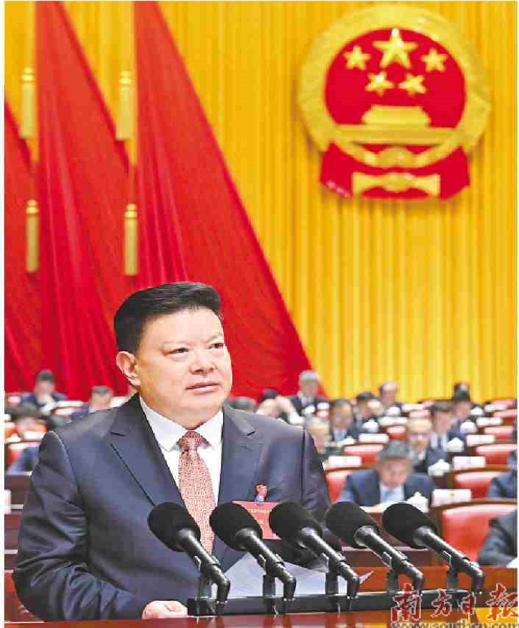 1月26日上午,广东省十四届人大五次会议在广州开幕,省长孟凡利向大会作政府工作报告。图片来源:南方日报