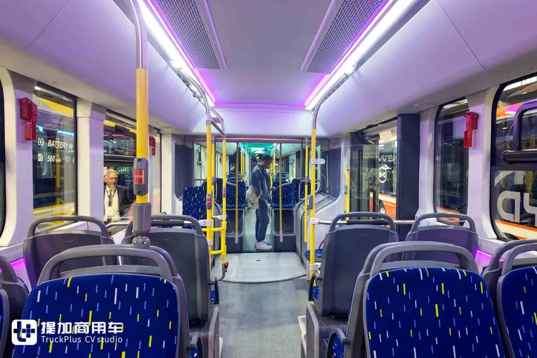 聊完技术,让我们开始深入产品。在本届Busworld Europe展会上,比亚迪带来了全球首发的B12.B HF纯电动客车,这是一款基于B12.B车辆家族发展而来的High Floor高地板纯电动城际客车,正是基于上文中介绍的底盘打造而来。相较比亚迪城市客车产品而言,B12.B HF有着更高地板高度,可容纳较多行李,但也保留了部分城市客车的易于上下、低重心特性,是一款关键的细分领域产品。