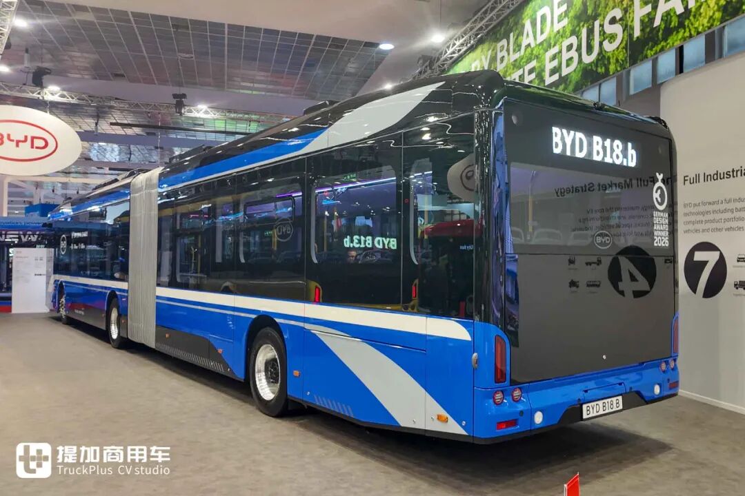在现场,比亚迪还带来了全新的纯电动铰接城市客车:B18.b。这款城市客车的车身长度达到18米,单铰接式车身结构,适合大容量城市内公交线路使用。基于e-BUS平台3.0,B18.b纯电动铰接城市客车充分利用了比亚迪全球首创的电池底盘一体化(CTC)技术,搭载了746kWh的超大容量电池。得益于其超大电池,比亚迪B18.b纯电动铰接城市客车的续航里程达到了630公里,遥遥领先于市面产品。再加轮毂电机电驱桥的极高效率,还可选四轮驱动系统,满足运营商对性能的严苛需求。