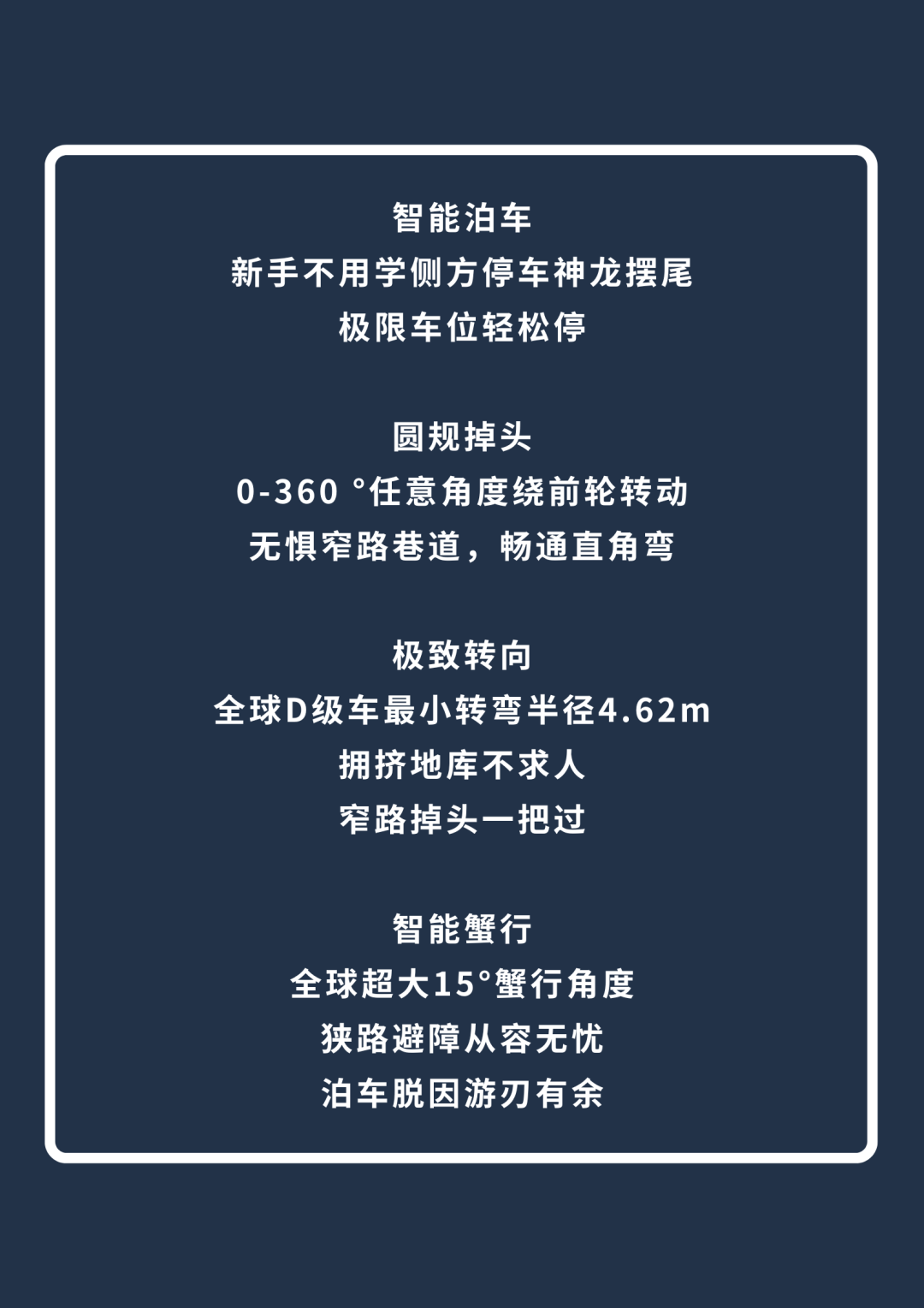 1. 可以围绕你刚看到的自动泊车、原地掉头、循迹倒车等功能展开想象