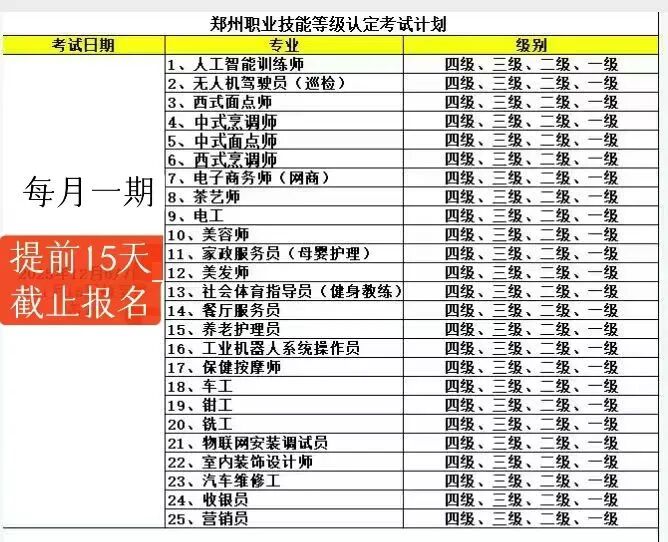 ✍✍以下工种提前10-15个工作日截止报名❀✿