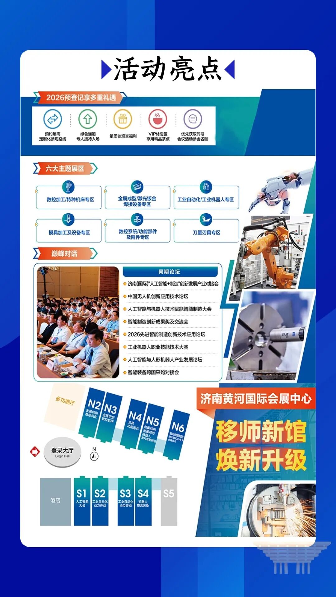 第29届济南国际机床展作为中国北方开春第一展,将于2026年3月17-20日,战略移师并全新启幕于国家级展馆——济南黄河国际会展中心。本届展会预计将吸引超过1000家海内外顶尖企业参展,集中展示高端数控机床、精密刀具、智能生产线、工业机器人及自动化解决方案等前沿技术与设备,是您洞悉市场趋势、寻找合作商机、升级技术装备的绝佳平台。