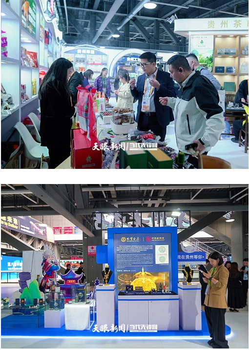 贵州展馆以“黔韵承经典·进博焕新彩”为主题,261平方米的展区集中呈现白酒、医药、食品加工、手工艺品、茶叶五大特色品类。其中,白酒类企业以茅台酒、习酒、董酒等白酒领军品牌为核心,彰显贵州酱香白酒的千年传承与国际影响力;医药类企业如贵州胡三帖药业、遵义廖元和堂药业,传承270余年苗药秘方与国家级非遗技艺;食品加工类企业涵盖贵州丁家脆哨特色食品、麻江县明洋食品、关岭陈姨妈食品等,展现酸汤、脆哨等地方风味的匠心工艺;手工艺品以大方彝族漆器、贵州西南黄金经营中心的“黔宝”金饰为代表,融合国家级非遗技艺与现代设计;茶叶品类则由贵州省雷山县毛克翕茶业、贵州都匀毛尖茶集团等企业领衔,呈现高山云雾茶的自然韵味。