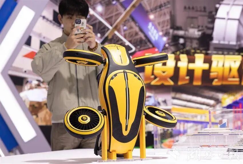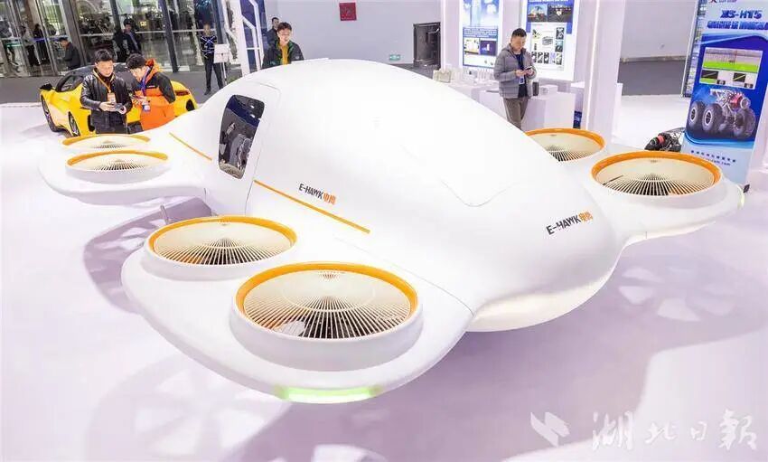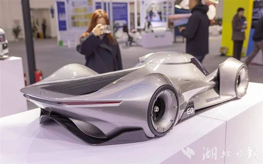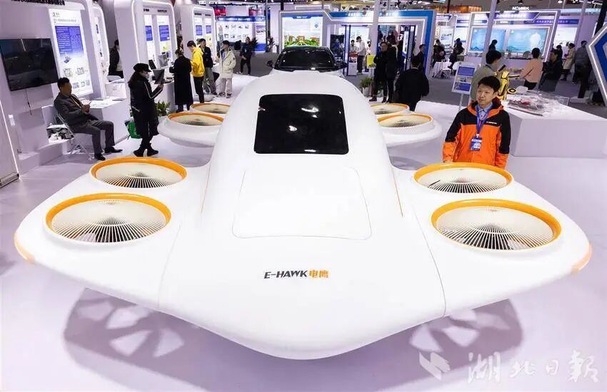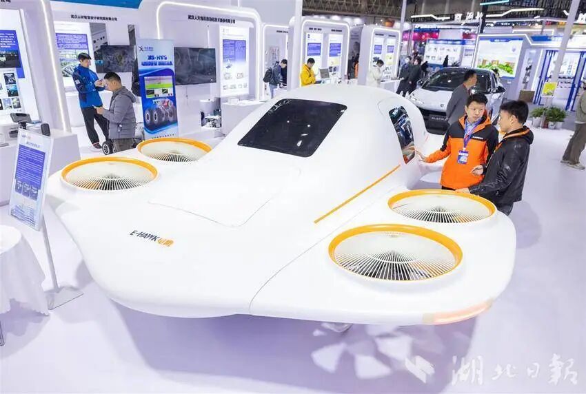 12月12日,观众在参观武汉电鹰科技研发的“涵道飞车”。(湖北日报全媒记者 柯皓 摄)