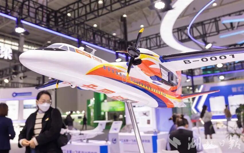 12月12日,观众参观新舟60灭火飞机模型。(湖北日报全媒记者 柯皓 摄)